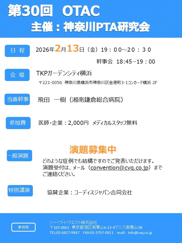 2026年2月13日(金)19時より第30回OTACが開催されますのでご案内いたします。 【 第30回OTAC 】日 …